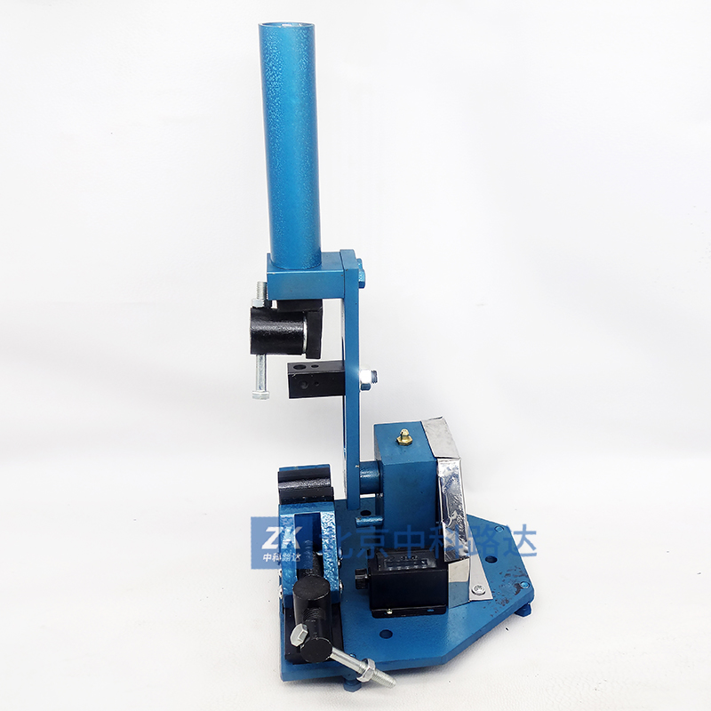 4、將搖臂處于垂直位置,并以此作為試驗(yàn)的起始狀態(tài)將試樣先穿入兩夾片中底板的孔內(nèi)。然后垂直向上從撥桿的下部穿過撥桿孔,再穿入上夾頭至頂部,轉(zhuǎn)動上夾頭手柄把線材上端夾緊
