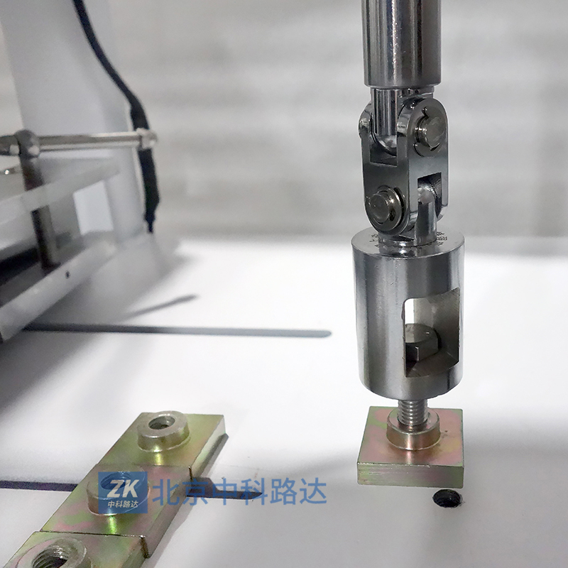 5將試件基板固定在測(cè)試儀底板上,如實(shí)時(shí)力值顯示非零,待顯示穩(wěn)定后,確認(rèn)測(cè)試頭不受力時(shí),把數(shù)值清零將萬(wàn)向卡頭扶正,測(cè)試頭移動(dòng)到試件附近(移動(dòng)時(shí)卡頭不要碰撞試件,以免損壞),平移測(cè)試頭,使試件上丁字頭移入測(cè)試頭,測(cè)試頭與試件中心偏差應(yīng)盡量小。準(zhǔn)備工作完畢。