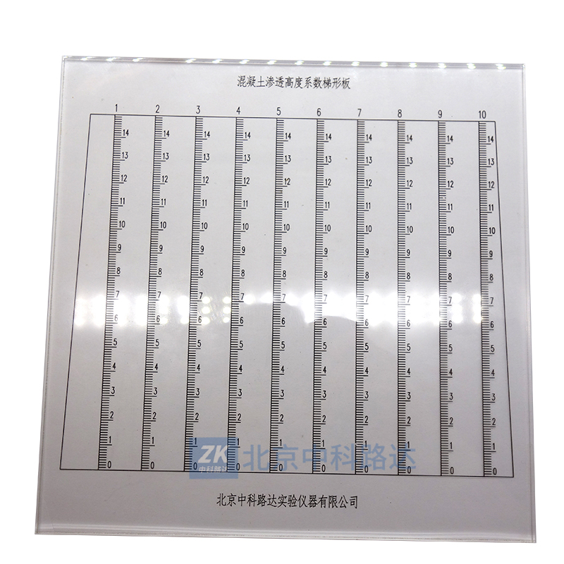 梯形板用于水泥混凝土滲水高度的試驗,適用于室內水泥混凝土的密實性檢測,計算相對滲透系數。符合JTG 3420-2020《公路工程水泥及水泥混凝土試驗規程》和GB/T50082-2009《普通混凝土長期性能和耐久性試驗方法標準》的試驗要求。