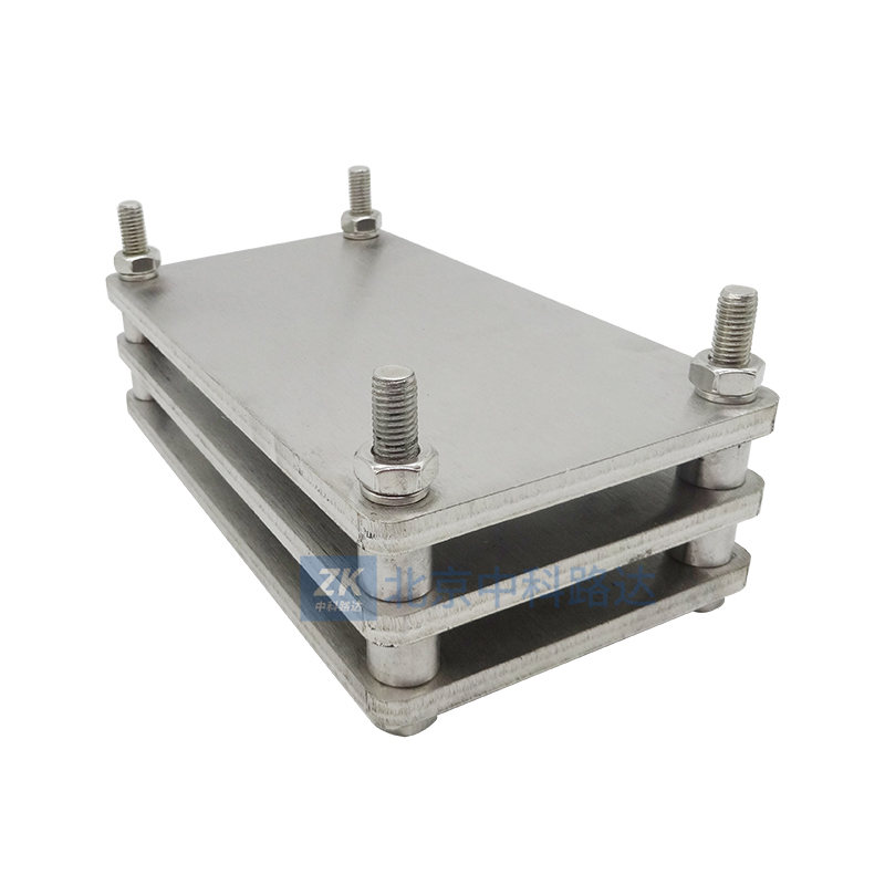 泡沫壓縮永久變形器由平行鋼板、限制器和緊固件組成,符合GB/T 6669-2008 ISO 1856:2000 《軟質泡沫聚合材料壓縮永久變形的測定》的要求。在規定的溫度下,使泡沫材料試樣在一定的時間內維持恒定的變形,待試樣恢復一段時間后,觀察形變對試驗厚度的影響。用試樣的初始厚度與最終厚度之差與試樣初始厚度之比的百分率表示該材料的壓縮永久變形。