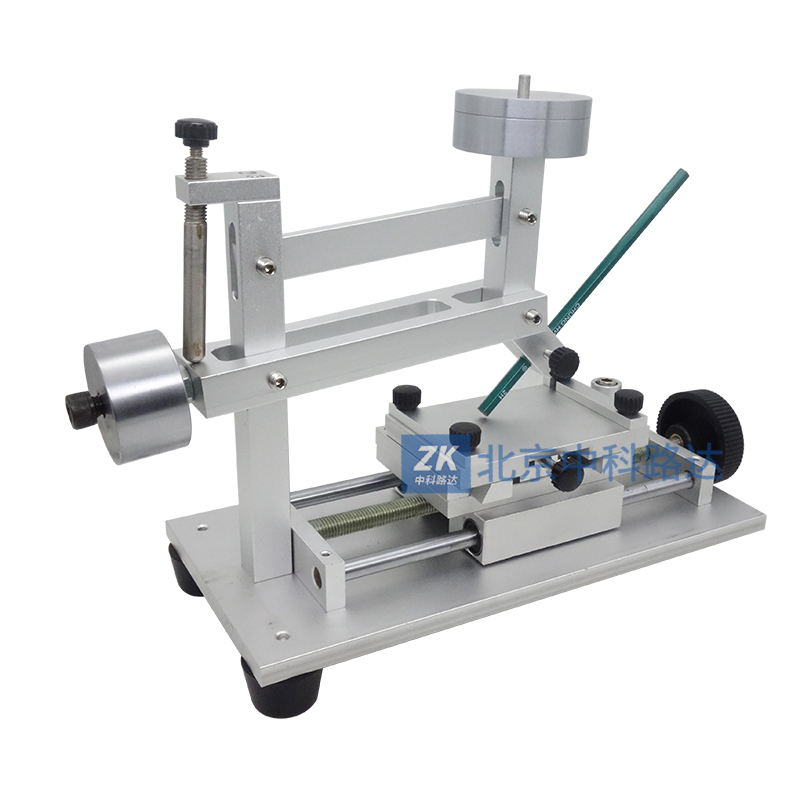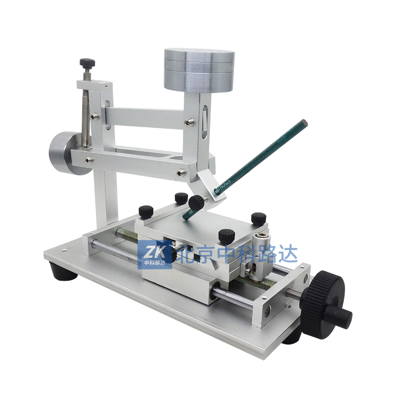 夾角,并保持不變,試驗臺可橫向、縱向移動,用它固定涂料樣板,并使樣板朝著劃痕方向滑動,鉛筆就在試片上劃出相應(yīng)軌跡來,換用不同鉛筆劃