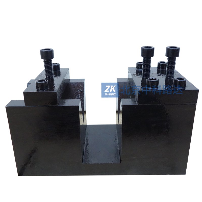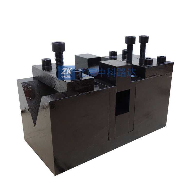 GFRP筋雙剪測(cè)試裝置配合萬(wàn)能材料試驗(yàn)機(jī)進(jìn)行玻璃纖維增強(qiáng)剪切強(qiáng)度的測(cè)定,由基座,刀片和連接板組成。