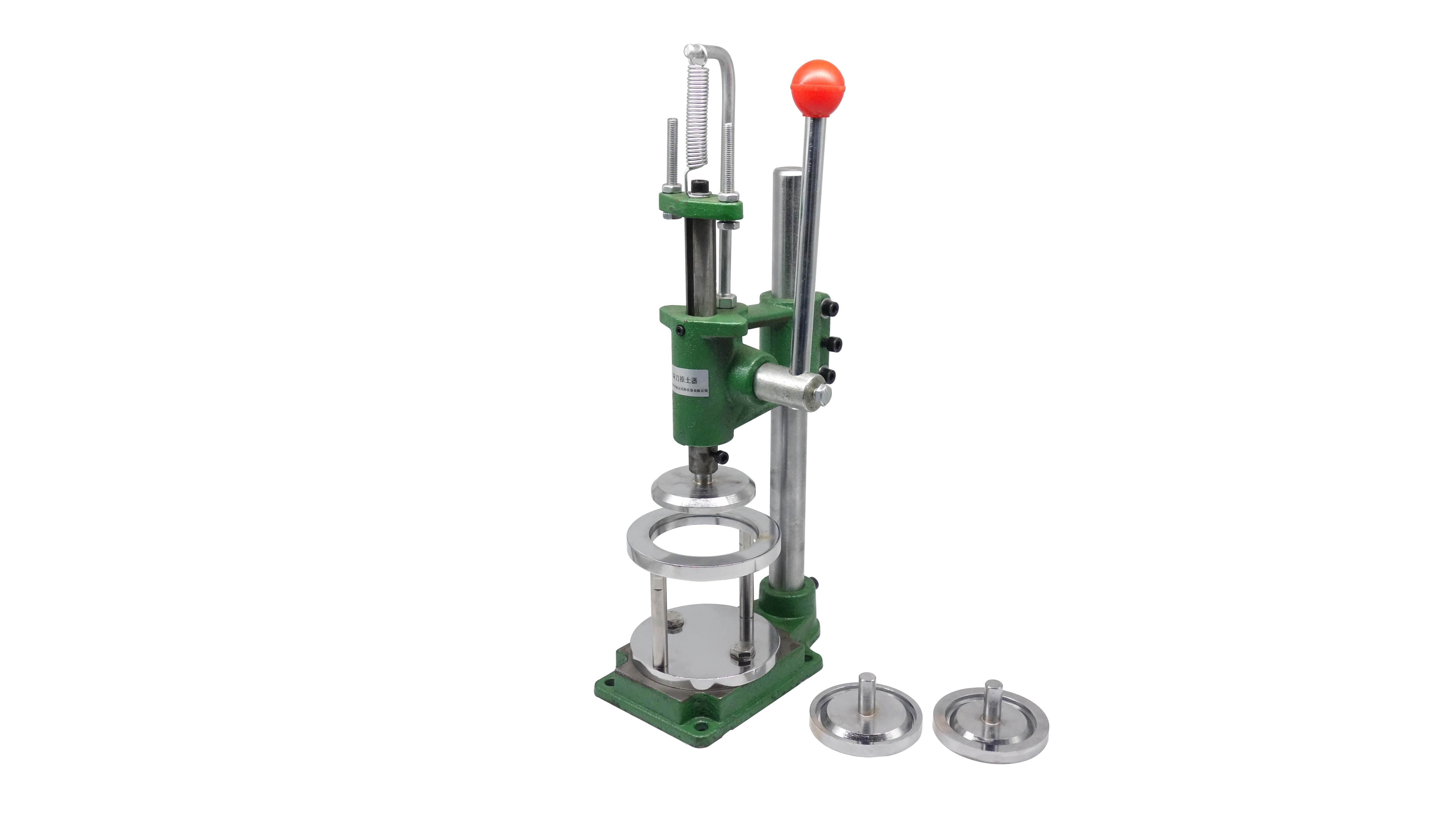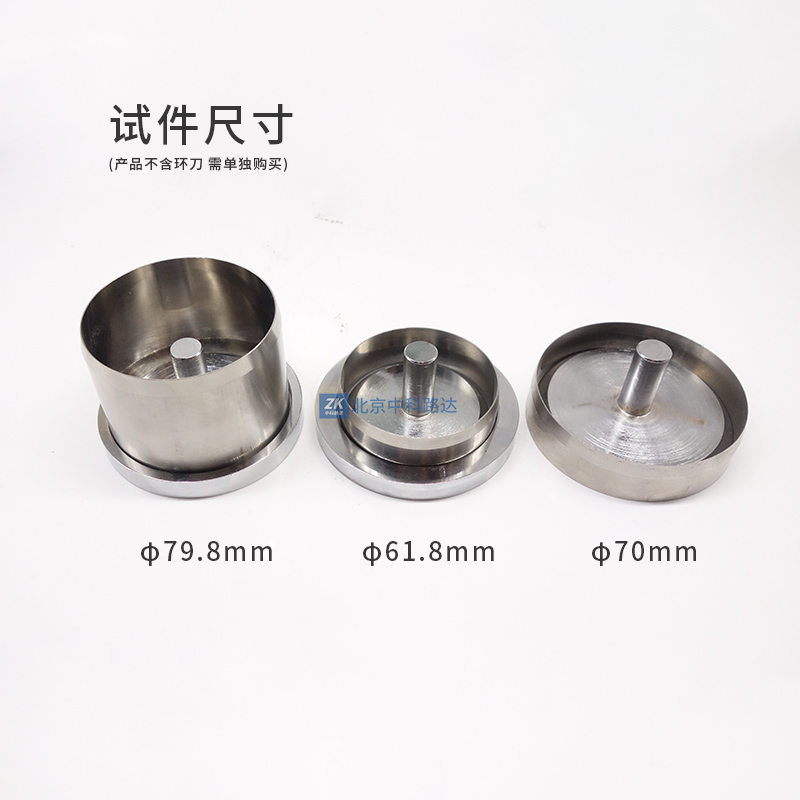 環(huán)刀推土器用于環(huán)刀取土后試件的推出,操作簡(jiǎn)單,快捷方便,備用三種壓頭和支座,可用于φ61.8mm,φ70mm 和φ79.8mm三種尺寸試件。