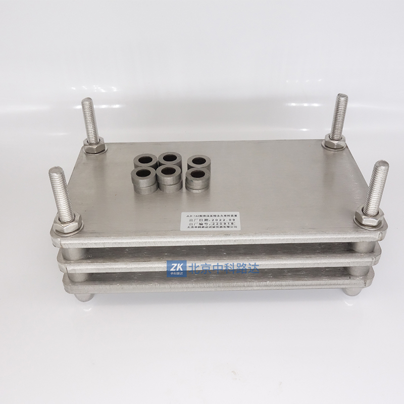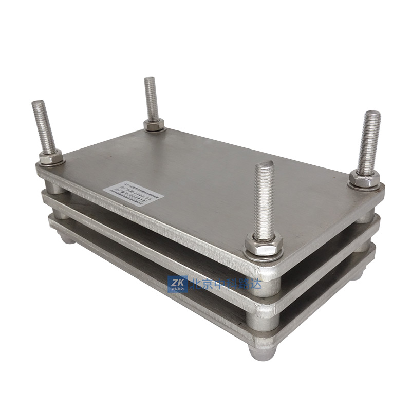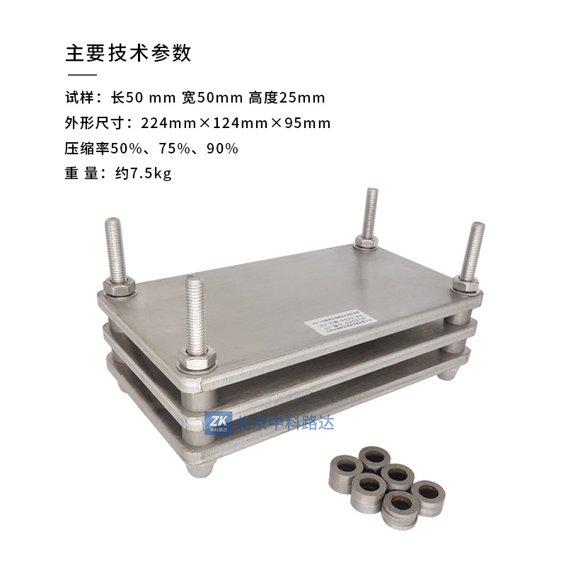 泡沫壓縮永久變形器由平行鋼板、限制器和緊固件組成,符合GB/T 6669-2008 ISO 1856:2000 《軟質泡沫聚合材料壓縮永久變形的測定》的要求。在規定的溫度下,使泡沫材料試樣在一定的時間內維持恒定的變形,待試樣恢復一段時間后,觀察形變對試驗厚度的影響。用試樣的初始厚度與最終厚度之差與試樣初始厚度之比的百分率表示該材料的壓縮永久變形。