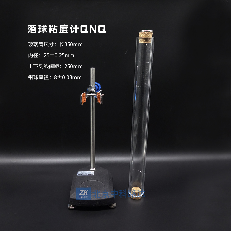 2、將管子顛倒使鐵釘吸住鋼球,再翻轉過來,固定在架上。使用鉛錘,調節璃管使其垂直。將永久磁鐵拿走,使鋼球自由下落,當鋼球剛落到上刻度線時,立即啟動秒表。至鋼球落到下刻度線時停止秒表。以鋼球通過兩刻度線的時間(s)表示試樣粘度的大小。