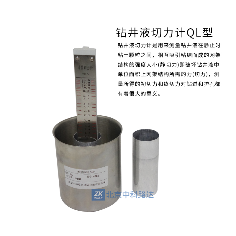 鉆井液切力計是用來測量鉆井液在靜止時粘土顆粒之間,相互吸引粘結而成的網架結構的強度大小(靜切力)即破壞鉆井液中單位面積上網架結構所需的力(切力),測量所得的初切力和終切力對鉆進和護孔都有著很大的意義。