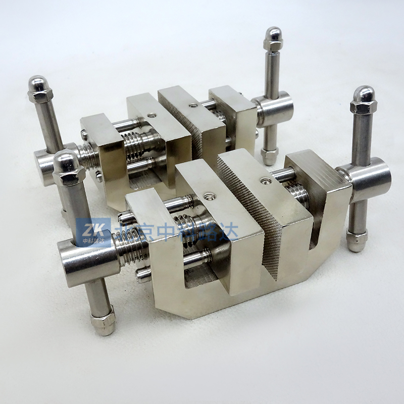 本夾具配合試驗機用于布料,皮革,木材,膠粘劑等材料的拉伸,剪切試驗,雙邊鎖緊,中心可調,夾片齒形為45°網紋形狀,不易打滑。