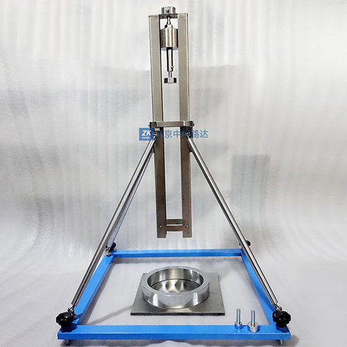 本儀器用于瀝青和高分子屋面防水卷材沖擊穿刺試驗,屬于沖擊引起穿刺的動態荷裁。試件的上表面被自由下落的重錘沖擊,重錘下端有規定的穿刺工具。當沖擊能量保持恒定時,穿刺工具的圓柱直徑不一樣。符合GB/T 328.24—2007《建筑防水卷材試驗方法》“第24部分:瀝青和高分子防水卷材抗沖擊性能”的標準要求。