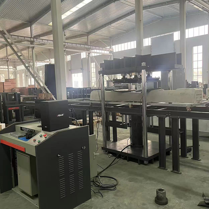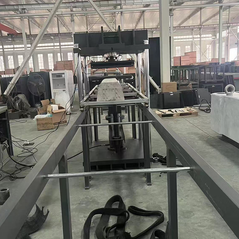 軌枕靜載試驗(yàn)機(jī)適用于檢測(cè)混凝土軌枕(Ⅰ型枕、Ⅱ型枕、Ⅲ型枕、叉枕、橋枕、寬軌枕等)的靜載抗裂張度實(shí)驗(yàn)的設(shè)備,本機(jī)采用了液壓加荷、微機(jī)控制、可顯示力值、變形、位移以及繪制各種曲線。能準(zhǔn)確檢測(cè)各種軌枕的靜載強(qiáng)度,并能測(cè)試軌枕實(shí)際載荷能力。軌枕靜載試驗(yàn)機(jī)主要由壓力機(jī)、小車、軌道、頂升機(jī)構(gòu)、通用控制油源、數(shù)字顯示系統(tǒng)等部分組成。