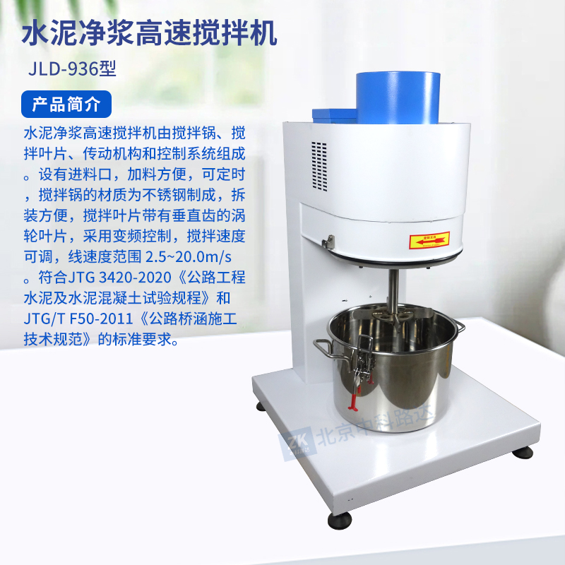 水泥凈漿高速攪拌機(jī)由攪拌鍋、攪拌葉片、傳動(dòng)機(jī)構(gòu)和控制系統(tǒng)組成。設(shè)有進(jìn)料口,加料方便,可定時(shí),攪拌鍋的材質(zhì)為不銹鋼制成,拆裝方便,攪拌葉片帶有垂直齒的渦輪葉片,采用變頻控制,攪拌速度可調(diào),線速度范圍 2.5~20.0m/s。符合JTG 3420-2020《公路工程水泥及水泥混凝土試驗(yàn)規(guī)程》和JTG/T F50-2011《公路橋涵施工技術(shù)規(guī)范》的標(biāo)準(zhǔn)要求。