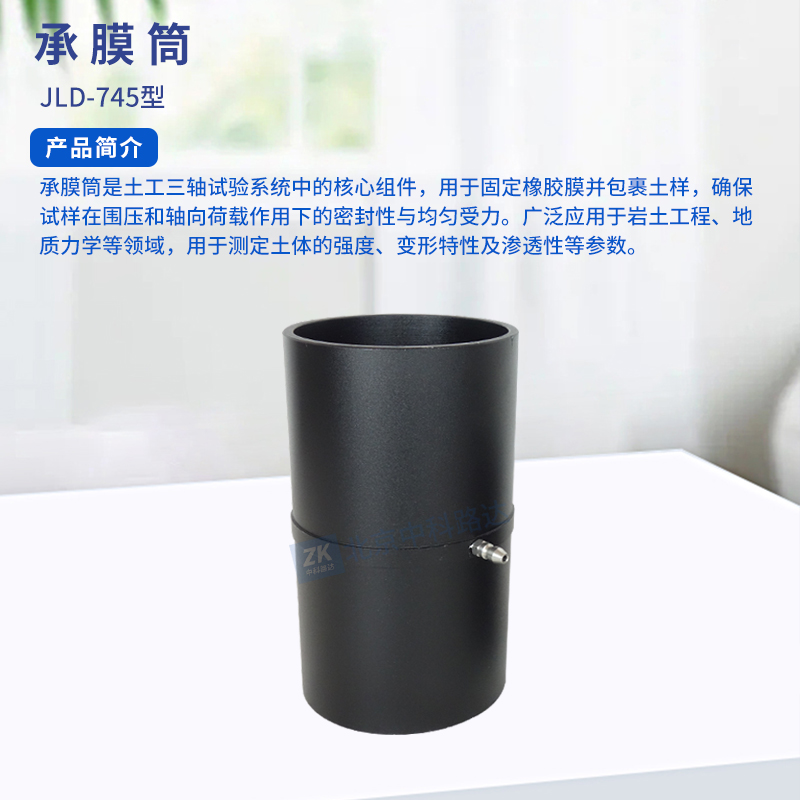 承膜筒是土工三軸試驗系統中的核心組件,專門用于固定橡膠膜并包裹土樣,確保試樣在圍壓和軸向荷載作用下的密封性與均勻受力。廣泛應用于巖土工程、地質力學等領域,用于測定土體的強度、變形特性及滲透性等參數。...