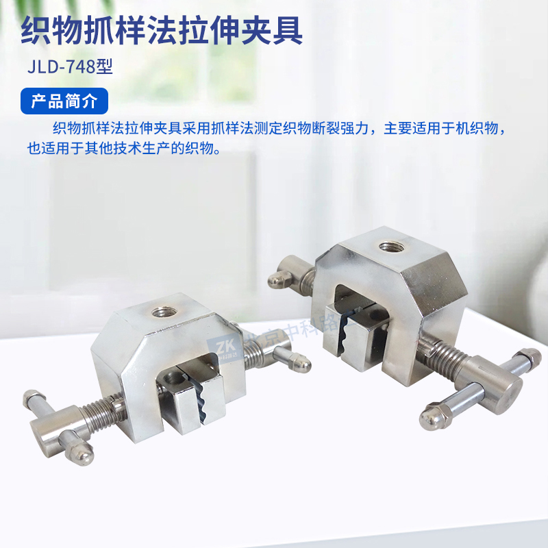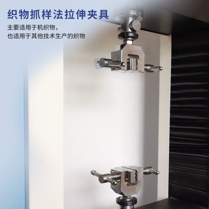 織物抓樣法拉伸夾具采用抓樣法測定織物斷裂強力,主要適用于機織物,也適用于其他技術生產的織物。