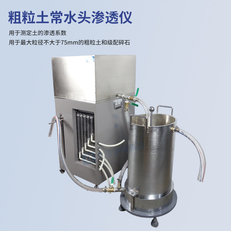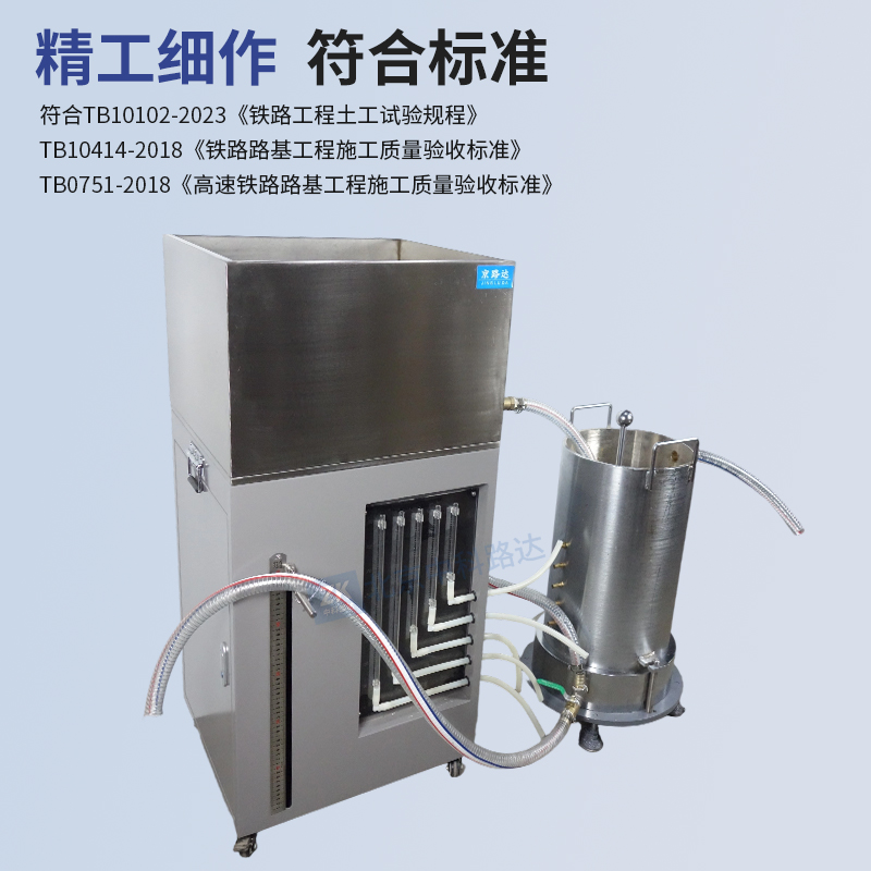 粗粒土常水頭滲透儀用于測定土的滲透系數,用于最大粒徑不大于75mm的粗粒土和級配碎石。符合TB10102-2023《鐵路工程土工試驗規程》、TB10414-2018《鐵路路基工程施工質量驗收標準》和TB0751-2018《高速鐵路路基工程施工質量驗收標準》的標準要求。