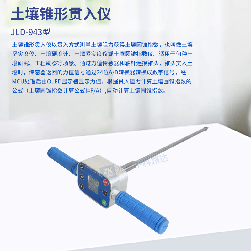 土壤錐形貫入儀以貫入方式測量土壤阻力獲得土壤圓錐指數,也叫做土壤堅實度儀、土壤硬度計、土壤緊實度儀或土壤圓錐指數儀。適用于何種土壤研究、工程勘察等場景。通過力值傳感器和軸桿連接錐頭,錐頭貫入土壤時,傳感器返回的力值信號通過24位A/D轉換器轉換成數字信號,經MCU處理后由OLED顯示器顯示力值,根據貫入阻力計算土壤圓錐指數的公式(土壤圓錐指數計算公式I=F/A),自動計算土壤圓錐指數。